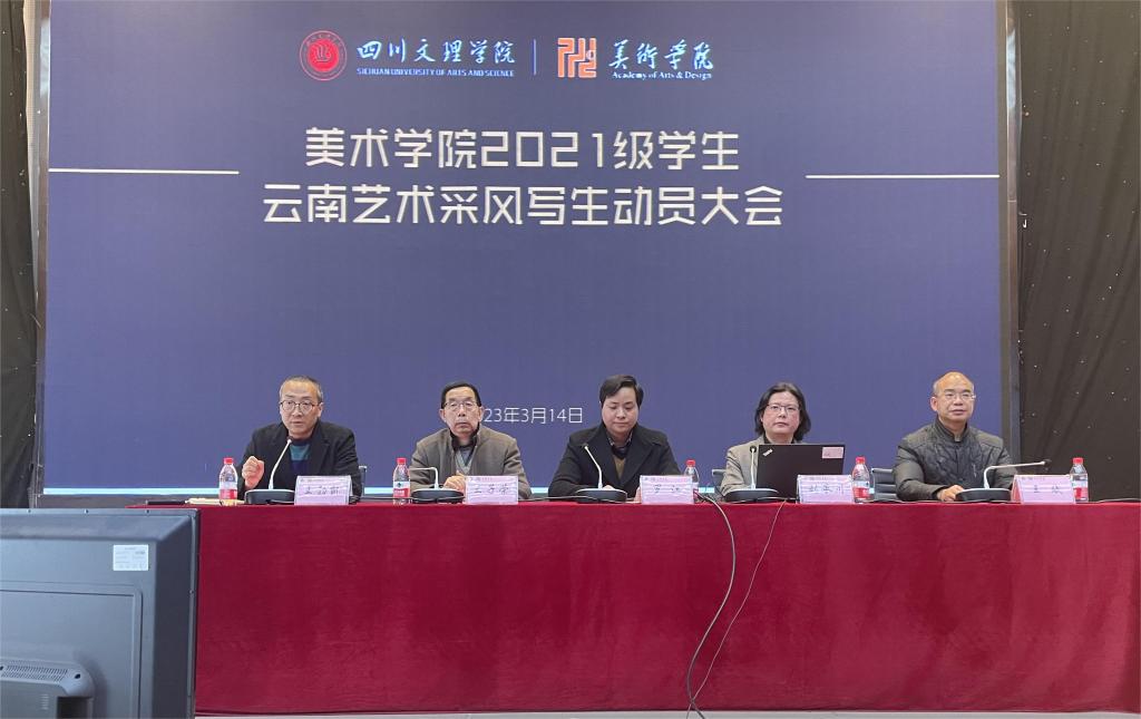 2023年3月14日下午15:00,beat365亚洲体育官方网站在艺术传媒大楼多功能厅召开2021级赴云南省《艺术采风》写生动员大会。列席本次会议的有:美术公司党委书记罗江,经理刘承川,公司党政办、教科办、学工办代表、各教研室主任、艺术采风带队老师、21级各班辅导员教师、2021级全体员工。会议由beat365亚洲体育官方网站副经理王勃凯主持。