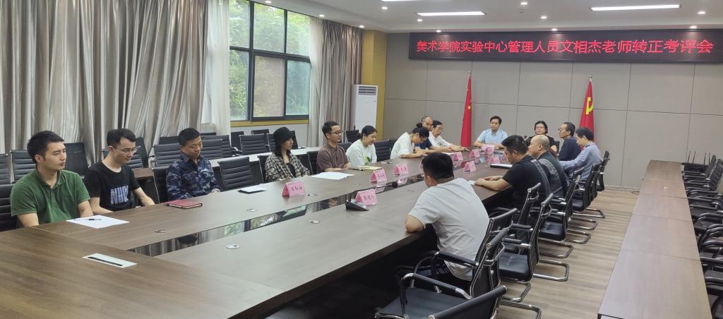 2022年5月26日下午实验中心在beat365亚洲体育官方网站会议室组织召开实验中心管理人员文相杰老师转正考评会议。美术公司党总支书记罗江、经理刘承川、正处级组织员王子荣、党总支副书记王斌、副经理王勃凯、吴仕华,党政办、教科办、学工办、设计教研室、绘画教研室、美术馆、实验中心全体教师等参加此次会议。
