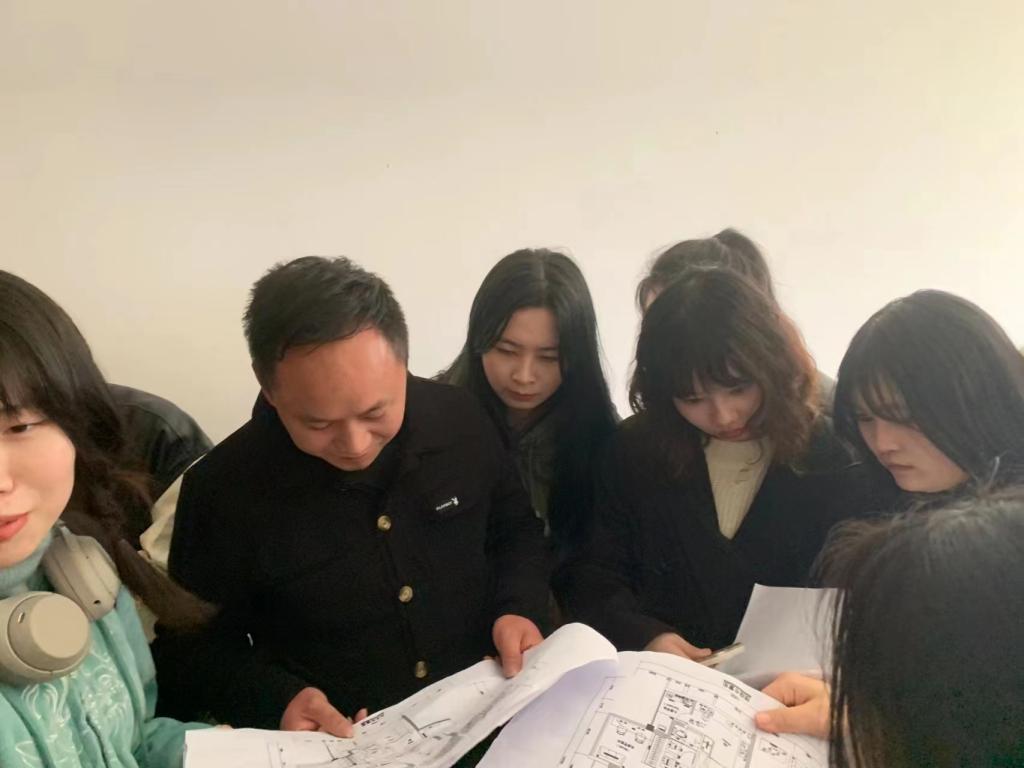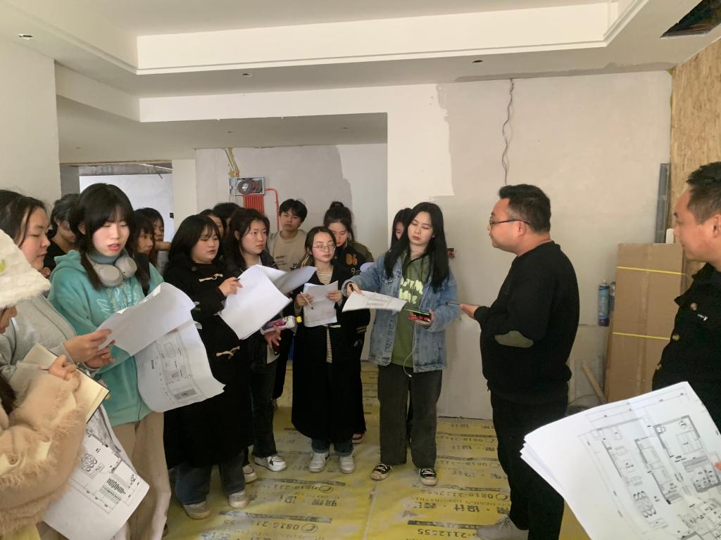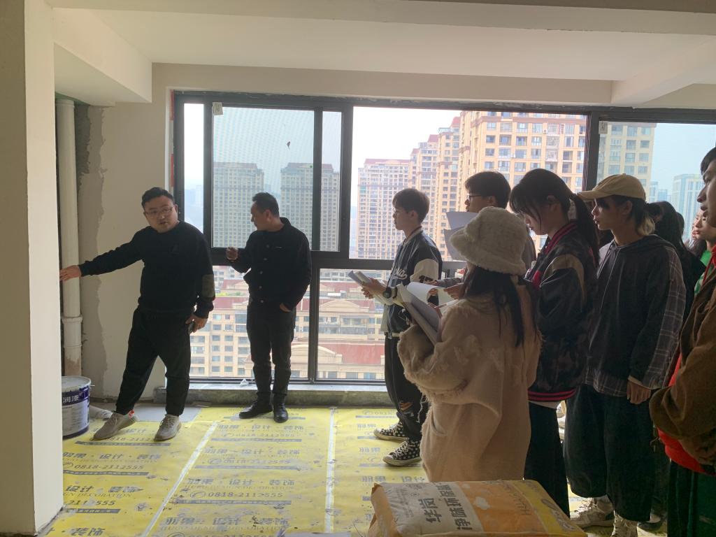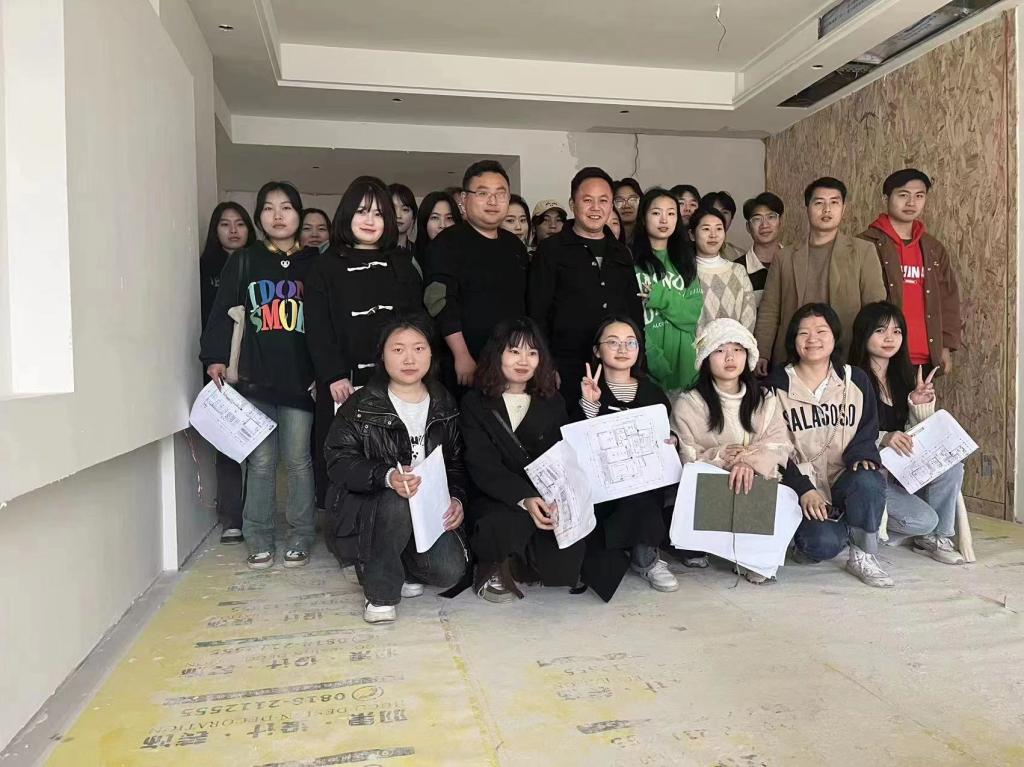 2023年3月7日上午, beat365亚洲体育官方网站2021级9班环境设计专业员工在李海峰老师的带领下进行了《居住空间设计》课程的实践教学活动,实践场地由入驻企业尚格装饰提供。企业负责人张聪先生在实践教学场地对员工进行现场专业指导,讲解了室内人居空间设计的注意事项和创意范例,展示了当代室内装饰的基本设计思路和现代新型装饰材料的运用效果。员工们认真听讲并做好笔记,并就自己感兴趣的方面向李海峰和张聪提出问题,双方就这些问题进行深入了的探讨交流。
