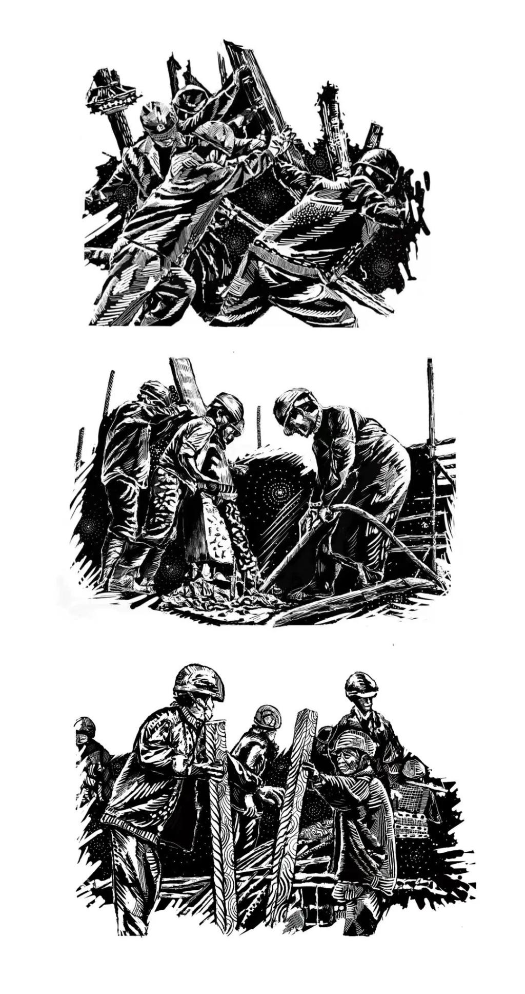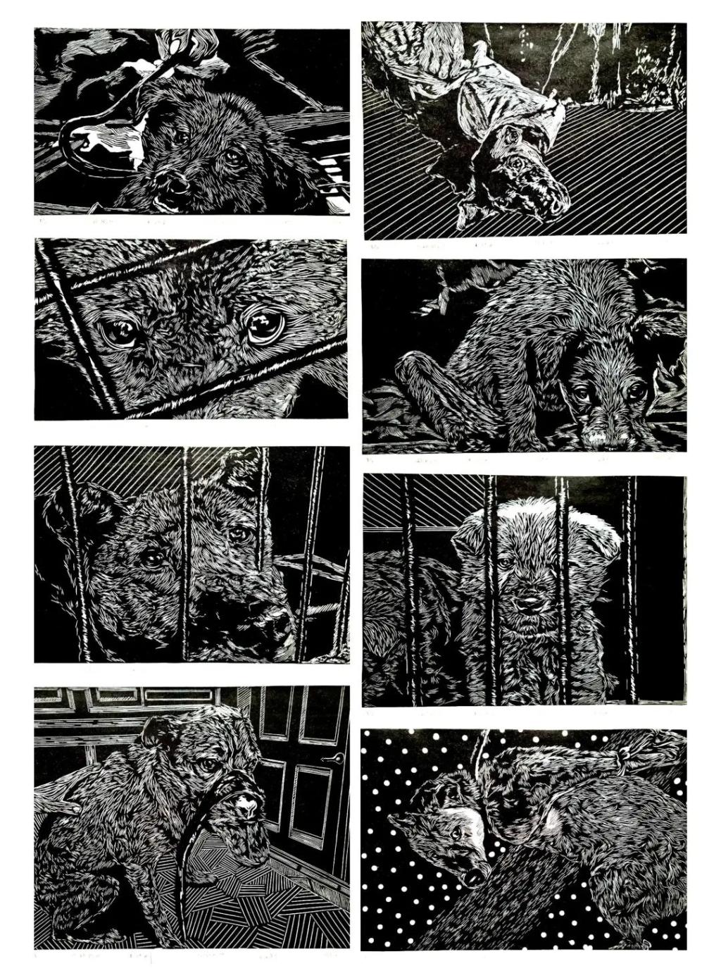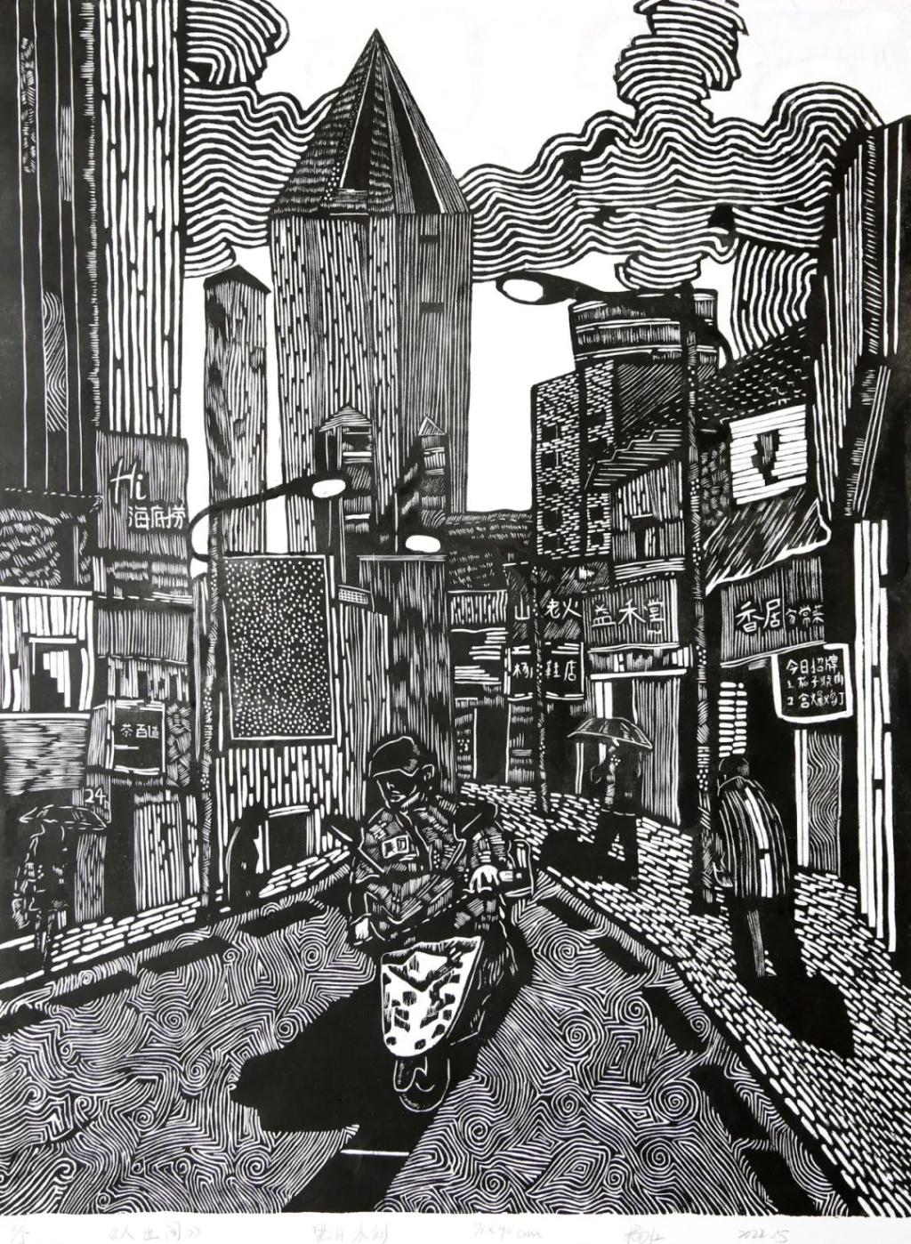《生活记忆系列》罗宇 黑白木刻50x60cmx6