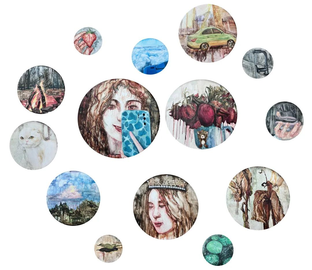 《默》·《目》·《以》 杨茜 油画 直径120cm 100cm 80cm
