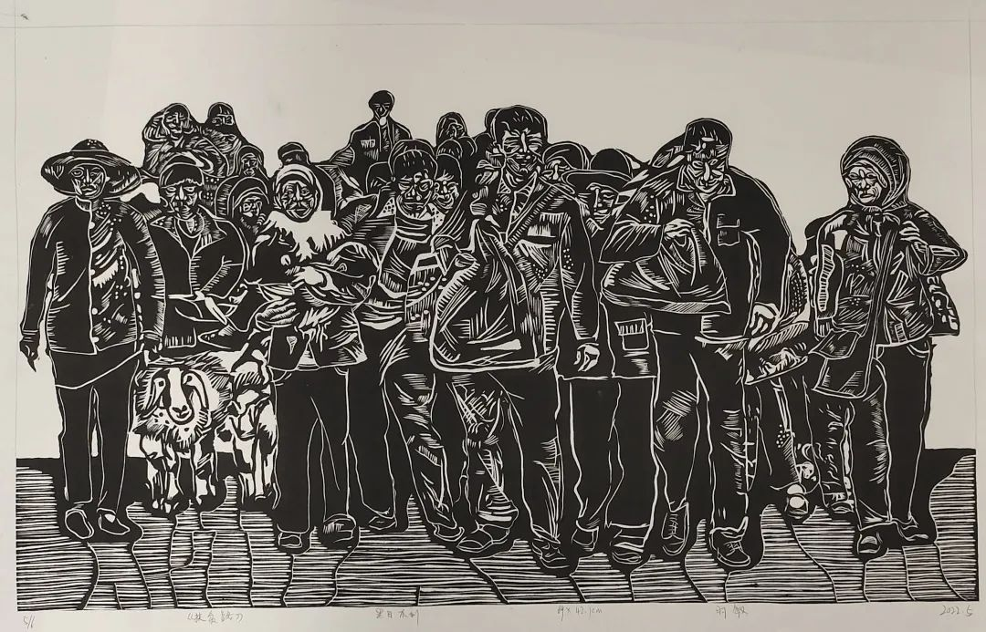 《朝圣者》王逸丹 黑白木刻 60x80cm
