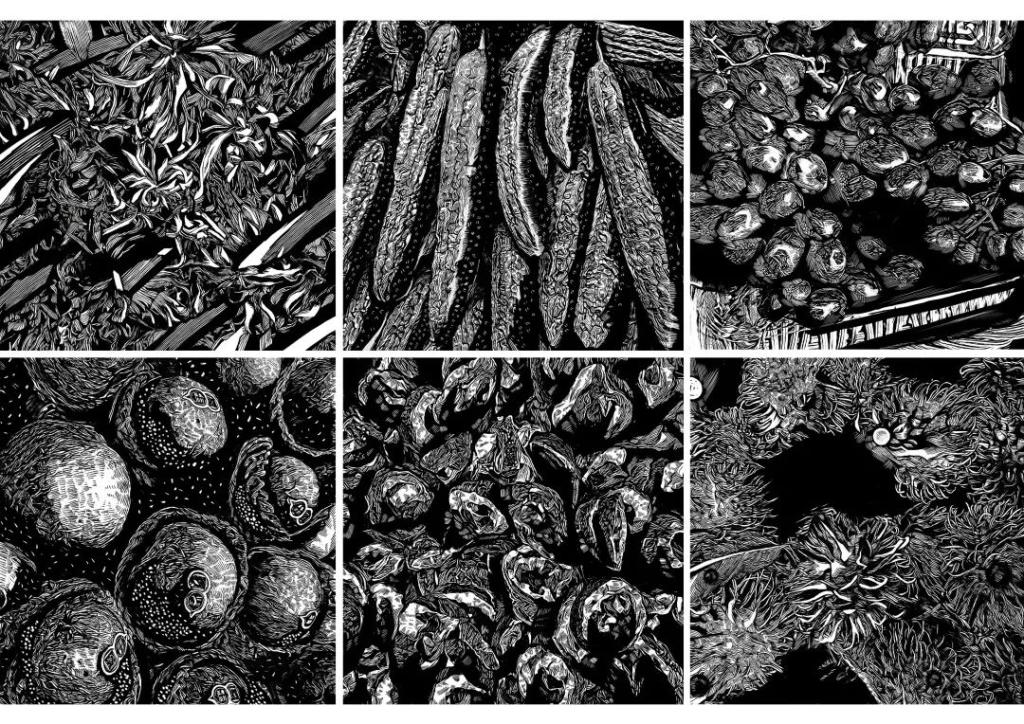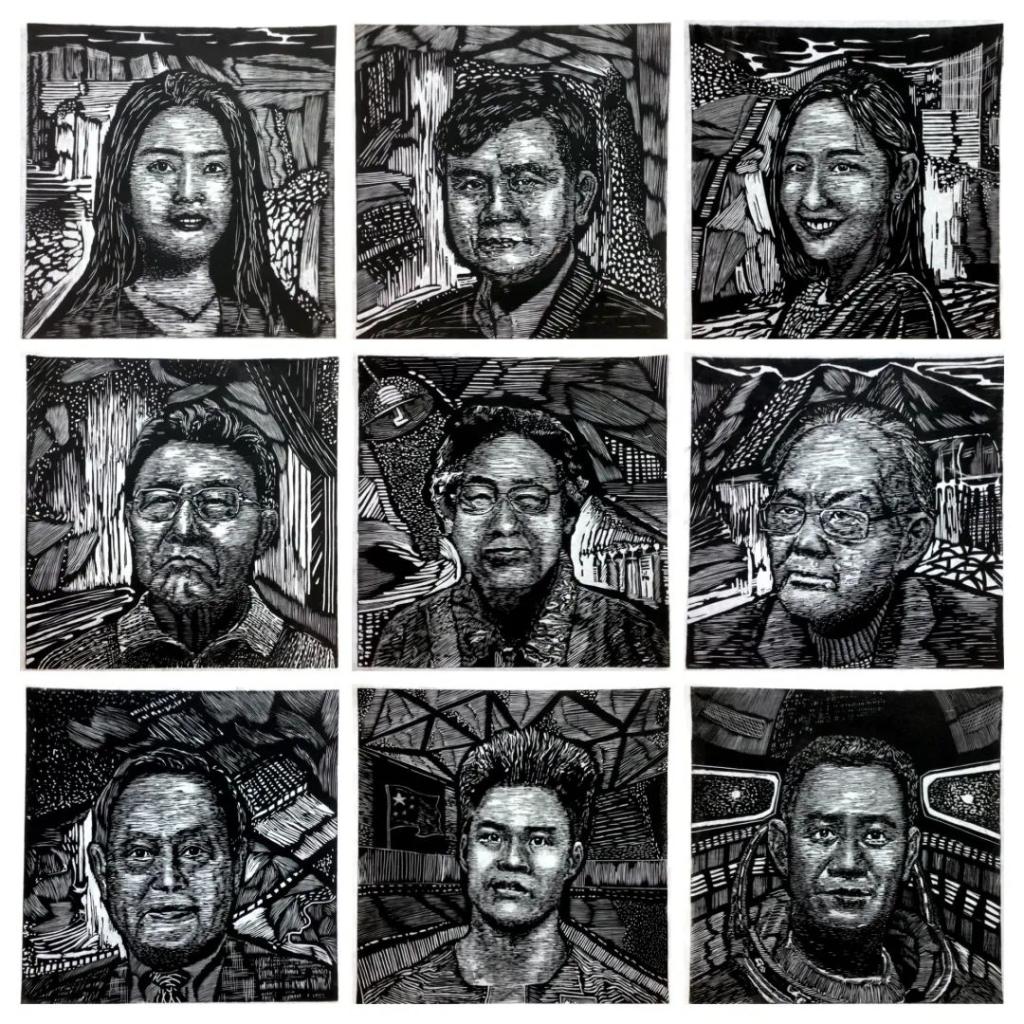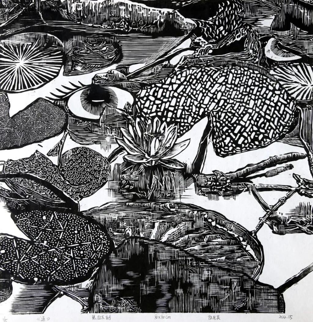 《粲然》蒋钰凤 黑白木刻 35x35cmx9