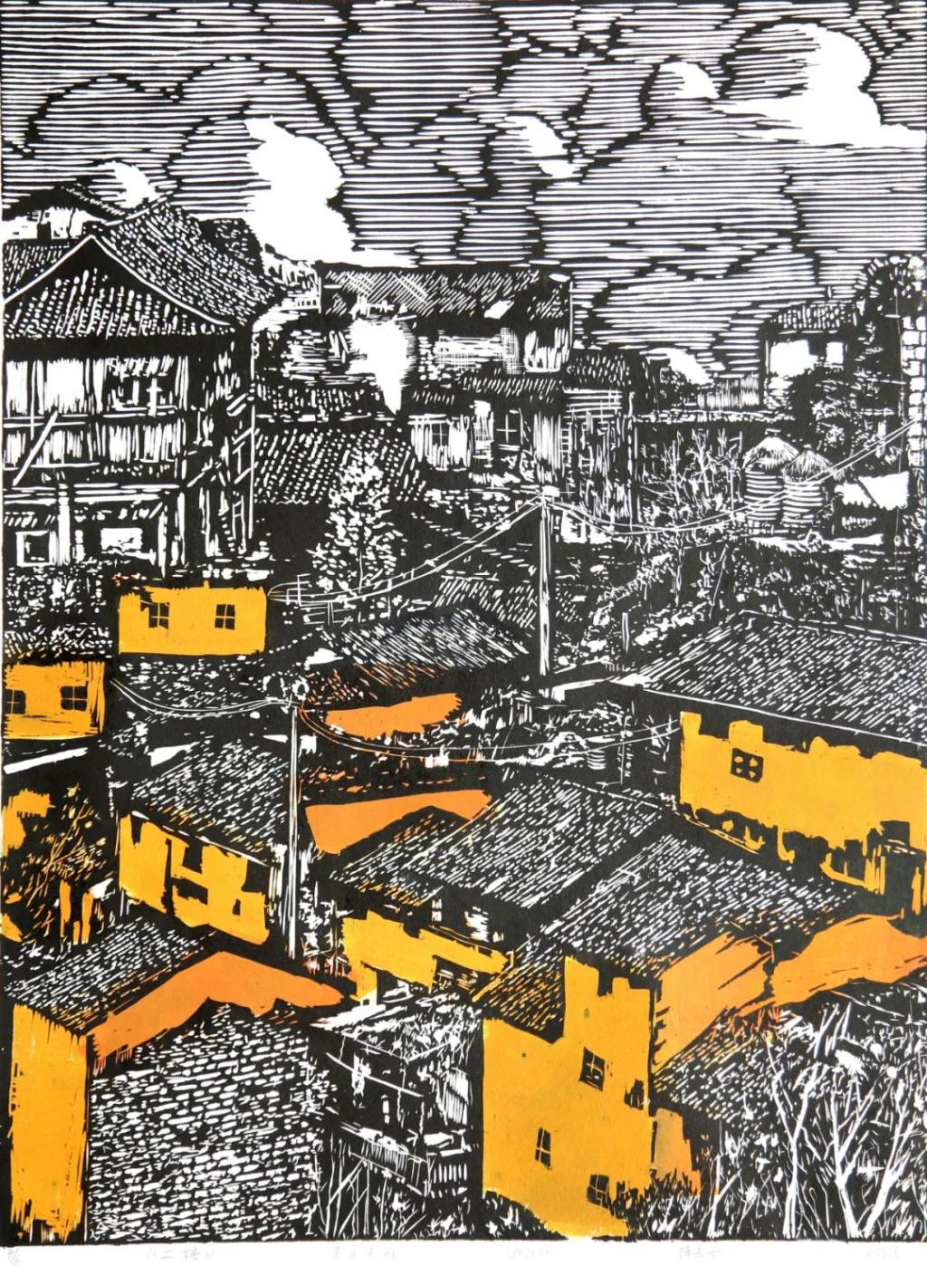 《忆丽江》 郭银林 黑白木刻 60x87cm