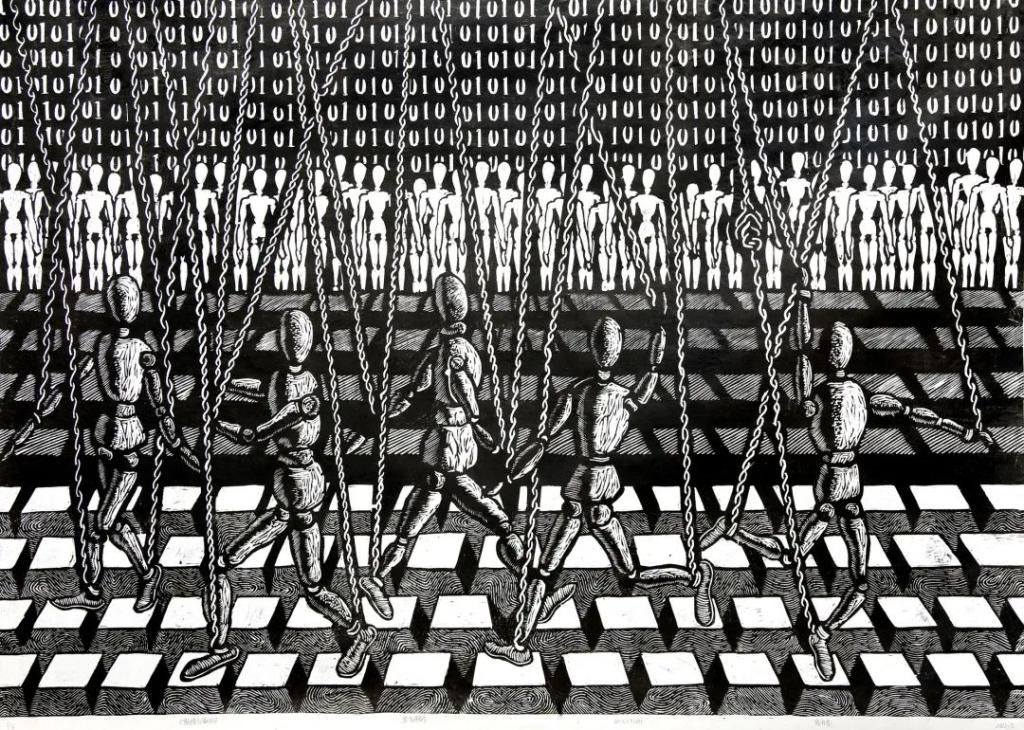 《纵壑之鱼》覃敏 黑白木刻 60x90cm