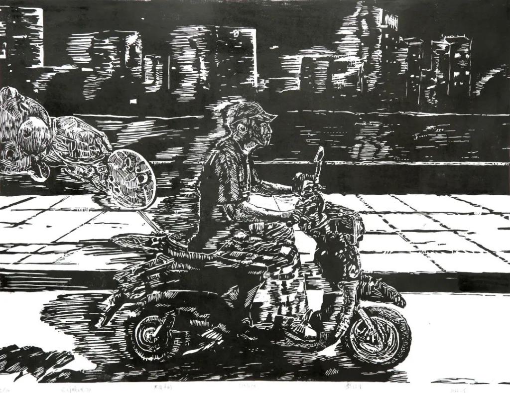 《迟暮之年》 何弟佳 黑白木刻 78x104cm