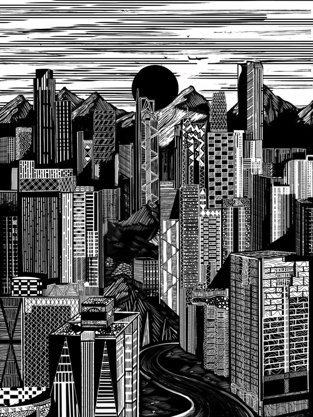 《傲慢与偏见》肖开乐 黑白木刻 80x115cm