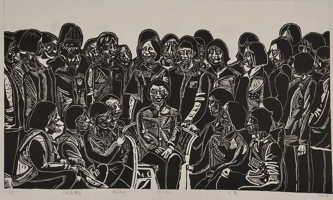 《时代楷模》谭慧芳 黑白木刻 150x150cm