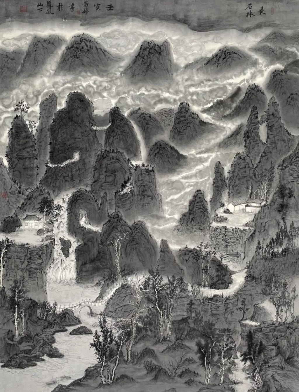 《夜游石林》 黎芳婷 纸本水墨 130×170cm