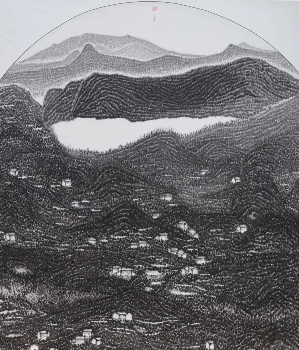 《土楼》 陈昱安 黑白木刻 58×78cm