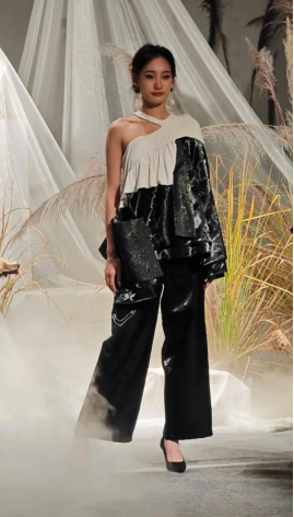 潺潺”,潺潺一词如同山间清泉,细水长流,它代表着时间的流逝,也象征着文化的传承。在这里以服装作为媒介,让历史的长河与现代的潮流在这里交汇,让古代设计与现代设计碰撞出新的火花。
