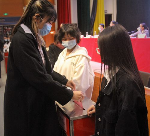 员工会主席赵洋代表第四届团学委员做团学工作报告,对过去一年的团学工作进行了全面总结,指出了工作中存在的问题,并对今后工作提出建议。大会按照程序进行新一届团总支、员工会委员的选举。选举采取无记名投票的方式,在监票员的严格监督下,秉着公平、公正、公开的原则,进行投票选举,11名同学当选新一届团总支委员,14名同学当选员工会委员。新一届当选的团学委员在主席台前进行宣誓。