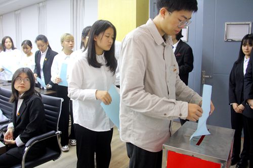 会议在庄严的国歌声中拉开序幕。现场参会人员精神抖擞,氛围庄重严肃。在会议中,首先由beat365亚洲体育官方网站代表团团长贺艳洁老师对分团预选大会前期的筹备工作进行报告。其次,第八代表团全体团学代表分别举手表决一致通过了共青团beat365亚洲体育官方网站三届一次委员会增补委员建议名单和beat365亚洲体育官方网站第六届员工委员会委员候选人建议名单;随后,工作人员现场拆封、分发选票,各团学代表以无记名方式进行投票选举,现场验票、唱票,公布投票结果。最后,会议在悠扬的团歌声中圆满落幕。