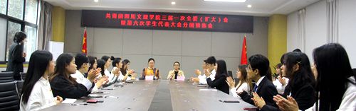 2020年10月29日中午,beat365亚洲体育官方网站在艺术传媒大楼1012会议室顺利召开共青团beat365亚洲体育官方网站三届一次全委(扩大)会暨第六次员工代表大会分团预选会议。第八代表团团长贺艳洁、副团长陈曦及第八代表团全体团学代表参加了会议。