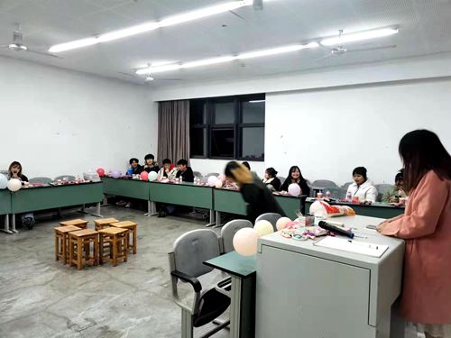 全班同学在一片高涨的情绪中布置场地,你吹气球,我搬桌子,他画板报,在一片轻松快乐的气氛中,主持人宣布今晚的活动正式开始,首先,第一个活动便是听歌识曲,谁猜对的歌曲最多,谁就能抽取相应的小奖励。同学们纷纷开始搜索自己脑海中的小曲库,非常热情的参与这次活动。第二个游戏是抢凳子,看谁先抢到小于参加人数的凳子,众人跃跃欲试,纷纷想展示自己的反应速度。第三个游戏是你比我猜,一位同学在前面比划,一位同学猜成语,看着那位同学夸张的动作时,其他人都捧腹大笑。