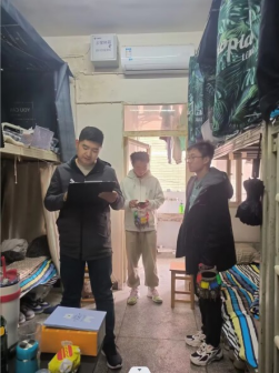 在检查走访过程中,王斌重点围绕员工宿舍整体卫生情况、个人卫生情况和存在的安全隐患进行了排查;贺艳洁重点对卫生死角和使用违规电器进行检查,指出部分寝室需着重改进卫生状况;王兆旺、王誉燃强调同学们要养成良好的生活习惯,预防危险事故的发生,共同维护寝室安全。同时,李雪对员工宿舍生活物品摆放、床上用品的整理以及公共学习室的清洁卫生提出改进意见。