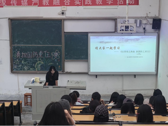 各班团支书带领班级同学们认真学习了国防的概念与意义、国防教育的重要性、落实青年国防意识培养等内容,强调把国防教育坚持融入日常、抓在经常;把国防教育的理念和要求有机融入到公司公司产品中,贯穿于日常教育全过程,树立大教育观念,推动国防教育与思想道德教育、文化知识教育、社会实践教育、家庭美德教育、职业技能教育等有机结合,用好思想政治理论课、主题班队会、党日团日、社会实践、社团活动和志愿服务等,对青年进行国防意识熏陶和知识技能培训。