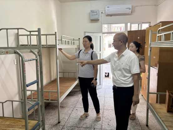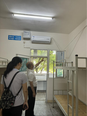 为确保2024级新生顺利入住宿舍,9月3日上午,美术公司党委副书记王斌,学工办主任贺艳洁,专职辅导员沈瑶瑶、王誉燃前往一舍、九舍新生宿舍进行走访,主要查看新生宿舍基础设施是否完备,宿舍空调能否正常使用,并与宿管人员交流宿舍情况,了解空调遥控器配备情况。走访期间,发现:一舍部分床位无床板、二舍114和117宿舍无空调接头转换器、一舍211等宿舍有线管脱落现象等。