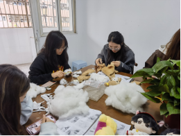 活动现场,指导老师王誉燃详细讲解制作流程,同学们积极参与、共同协作,纷纷拿起针线、布料和填充物等材料,开始了自己的玩偶制作之旅。同学们两两一组或三四成群,围坐在活动室的桌子旁,一边讨论着设计思路,一边动手制作着属于自己的玩偶。在制作过程中,室友们相互协作,共同商讨玩偶的样式、颜色和大小等细节。有的负责剪裁布料,有的负责缝制,还有的负责填充和装饰。大家分工明确,配合默契,整个活动室充满了欢声笑语和温馨的氛围。除了制作玩偶,同学们还利用这个机会交流了日常生活中的趣事和困扰。他们发现,原来彼此之间有着这么多的共同点和话题,这让他们更加珍惜这份难得的室友情谊。