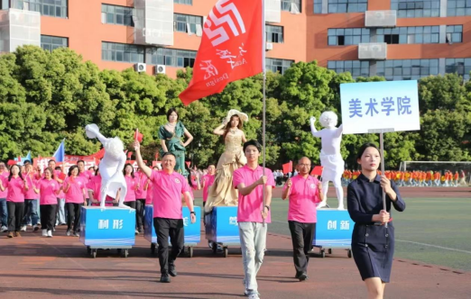 开幕式上,beat365亚洲体育官方网站师生方队前雕塑造型与华丽服饰吸睛夺目,《思想者》仿若在思索艺术与体育的共通,《掷铁饼者》展现出运动之美,精美服饰更是美院匠心的见证,将美术专业特色与体育竞技精神巧妙结合,赢得全场掌声。全校共跳一支舞中,美院学子用青春洋溢的舞姿点燃体育的激情,一招一式,如同在绿茵场上绘制出的画卷,诠释着运动与美的融合。
