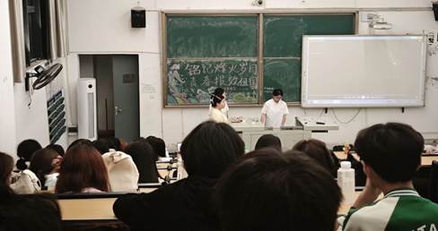 活动在庄严嘹亮的团歌声中拉开序幕。在团支部书记的带领下,全体团员青年深入学习了习近平总书记关于全民国防教育的重要讲话和重要指示精神,深刻把握“强国必须强军,军强才能国安”的核心要义。随后,各团支部以“烽火中的青春答卷”为题,结合鲜活的英雄事迹,生动讲述了革命年代青年志士的奋斗故事。从五四运动中振臂高呼的青年先锋,到抗日战场上以身殉国的年轻战士,一个个震撼人心的故事让在场美院学子深受触动。