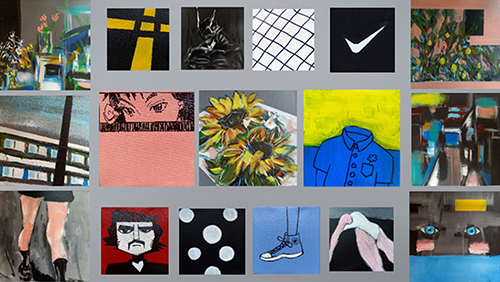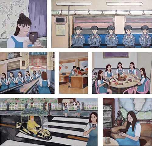 《手机控》布面油画 110×110cm 2020 袁子琦 指导老师:王勃凯