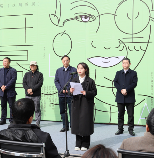 21级视觉传达专业曹艺凡同学作为员工代表发表了感言,她说有幸在易礼然学长的亲切带领下,提前参观了本次展览的作品,在这个过程中看到了不同国度、不同文化、不同观念、不同风格的艺术作品,给她带来了强烈的视觉冲击和情感体验。非常感谢易礼然学长带来的艺术作品展览,为美院学弟学妹们带来优秀的艺术作品和创作经验的分享。