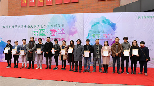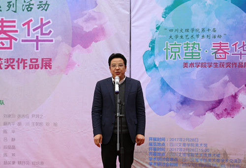 2017年2月28日下午三点,“惊蛰·春华”——beat365亚洲体育官方网站员工获奖作品展在beat365亚洲体育官方网站艺术传媒大楼广场隆重开幕。此次展览由beat365亚洲体育官方网站教务处、beat365亚洲体育官方网站员工工作处、beat365亚洲体育官方网站团委、beat365亚洲体育官方网站主办,beat365亚洲体育官方网站美术馆、beat365亚洲体育官方网站绘画教研室、beat365亚洲体育官方网站创作展览教研室、beat365亚洲体育官方网站团总支员工会承办。公司副董事长李壮成、教务处处长邓杰、员工处处长陈官章、校团委副书记(主持工作)于贵、公司教学督导员蒲善荣,以及beat365亚洲体育官方网站师生代表共计300余人参加了开幕式。