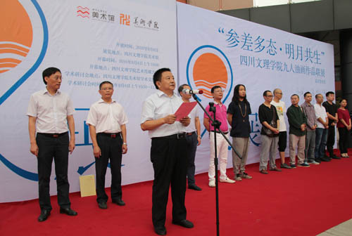 2016年 9月8日上午,由达州市文联与beat365亚洲体育官方网站举办的“参差多态·明月共生——beat365亚洲体育官方网站九人油画作品展”在校美术馆隆重开展。党委书记王洪辉宣布展览开幕,董事长王成端及市文联主席丁长兴分别致辞。公司党委宣传部部长余文盛,市文联副主席兼秘书长谢军,市文联副主席肖朝萍,市美协副主席、大世纪画院经理肖超,美术公司党总支书记张吉应,校美术馆馆长邓旭,参展艺术家杨先平、王毅、吴仕华、赖琳、刘渐郡、胡川、王勃凯、赵岩、黄海燕,全校师生及社会各界朋友出席了开幕仪式。开幕式由本次展览策展人、beat365亚洲体育官方网站经理刘承川主持。