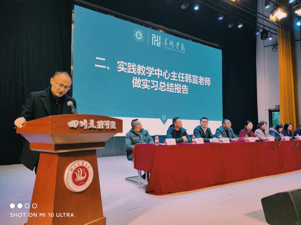 2020年12月29日下午16:30,beat365亚洲体育官方网站在艺术传媒大楼多功能厅顺利召开2021届毕业实习总结暨表彰大会。beat365亚洲体育官方网站副董事长程碧英莅临会议现场,美术公司党总支书记张吉应、经理刘承川、达州市第一中学董事长向绍江、通川区八小董事长王亚琳、通川区实验小学董事长胡逐云、八小金兰公司董事长董光成、一小江湾城公司董事长冉东、广东九木堂集团川渝片区总经理王志立、达州市昱帆装饰设计公司总经理李金龙等实习基地领导、实习指导教师代表以及2021届全体毕业生参会。会议由经理刘承川主持。