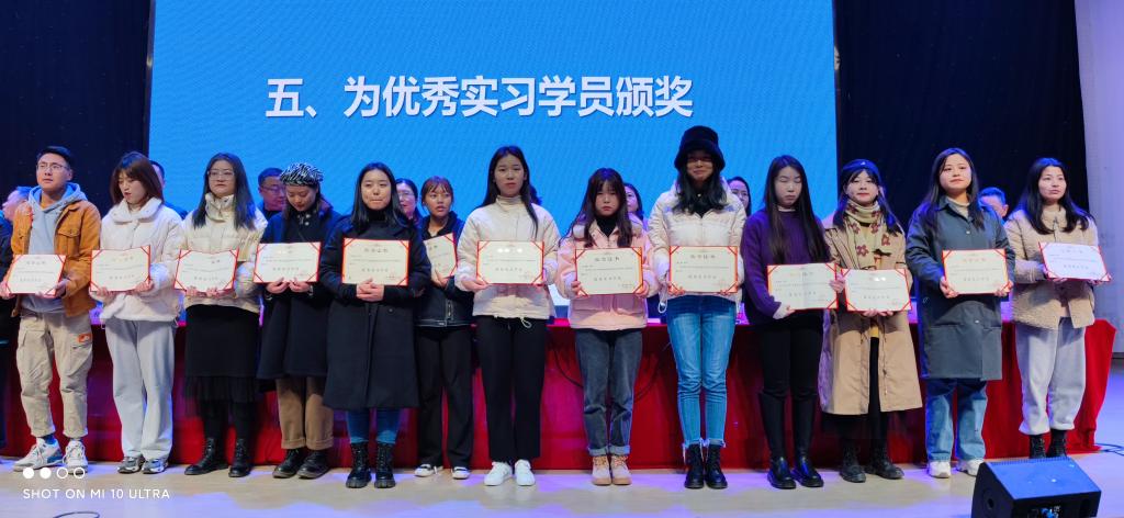 接着,优秀实习指导教师代表冉媛、优秀实习学员代表伍欣怡、实习基地领导代表向绍江、王亚琳分别作交流发言。