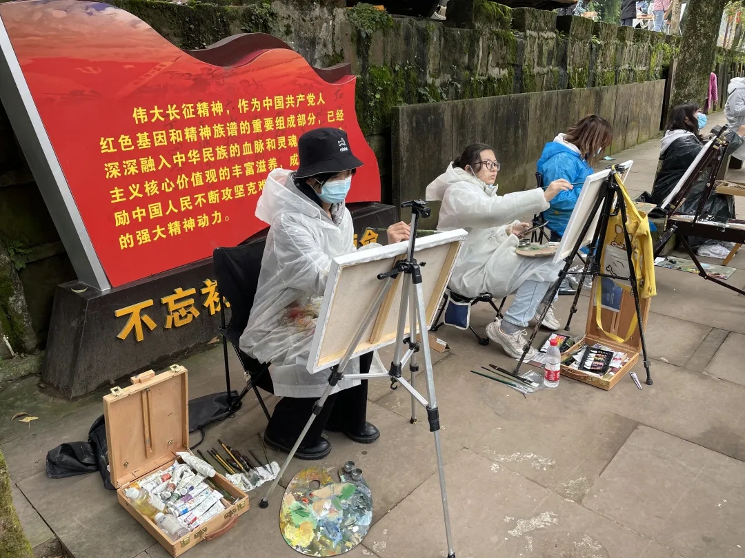 11月10日同学们在老师们的带领下来到红军石刻处,进行《油画基础》的课程思政教学。由专业教师给大家讲解红军在上里古镇的革命事迹,感受革命先烈的无畏、无私、吃苦、朴素、睿智、勇敢、坚强的红军精神,接受红色文化的熏陶,传承红色基因,将艺术专业课程与课程思政教育有机结合。最后大家合影留念并在此处进行写生。