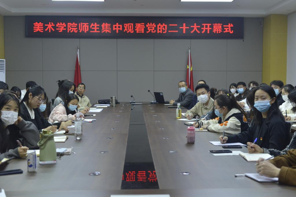 美术公司党总支书记罗江、正处级组织员王子荣、党总支副书记王斌,副经理王勃凯、吴仕华、专职辅导员沈瑶瑶及员工党员、团总支员工会主要干部相聚在艺术传媒大楼1012会议室,认真聆听习近平总书记的讲话。其余师生通过电视、网络以及移动终端等多种形式观看,切实做到党的二十大精神学习全员覆盖。