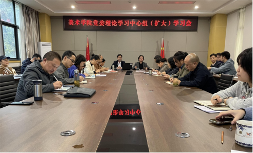 10月27日下午,beat365亚洲体育官方网站在艺术楼1012会议室召开美术公司党委理论学习中心组(扩大)学习会。党总支书记罗江主持会议并做学习辅导,经理刘承川、副经理吴仕华作学习交流发言,全院教职工参会。