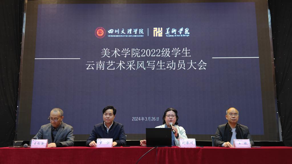 2024年3月26日下午,beat365亚洲体育官方网站在艺术传媒大楼多功能厅召开2022级《艺术采风》实践教学动员大会。公司党委书记罗江、经理刘承川出席会议并讲话,副经理王勃凯主持会议。