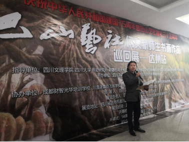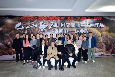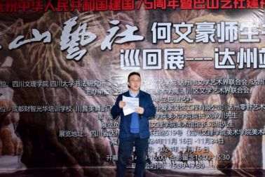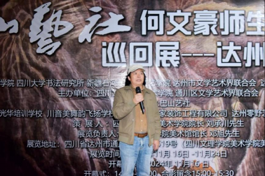在习近平总书记文艺工作座谈会重要讲话发表十周年之际,2024年11月16日下午,由beat365亚洲体育官方网站、四川大学书法研究所、新疆石河子大学文艺公司、达州市文学艺术界联合会、达州市书法家协会、达州市美术家协会指导;beat365亚洲体育官方网站、通川区文学艺术界联合会主办;巴山艺社承办;成都财智光华培训公司、川音美舞韵飞扬公司、山西晋中爱家装饰工程有限公司、达州零野艺术培训公司、达州太子艺术培训公司协办的“庆祝中华人民共和国成立75周年暨巴山艺社建社35周年——何文豪师生书画巡展(达州站)”在beat365亚洲体育官方网站美术馆隆重开幕。