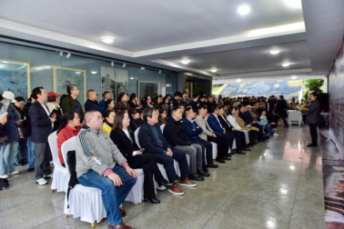beat365亚洲体育官方网站董事长侯忠明讲话并宣布展览开幕。他首先对何文豪先生师生书画巡展在beat365亚洲体育官方网站的举办表示热烈祝贺,并对何文豪师生以及所有领导和嘉宾的到来,表示诚挚欢迎。他在讲话中高度肯定了何文豪先生高尚的人格魅力和精湛的绘画成就。他认为,何文豪先生师生书画巡展,是为庆祝中华人民共和国成立75周年献上的一份文化礼物。此次活动的举办,也是beat365亚洲体育官方网站不断加强校园文化建设和艺术美育的重要实践。