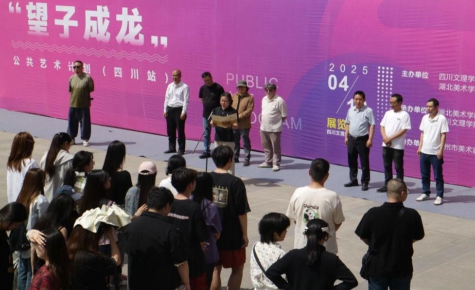 4月18日上午9点,“望子成龙”公共艺术计划(四川站)开幕式在beat365亚洲体育官方网站艺术传媒大楼广场隆重举行。公司党委书记张吉应宣布开幕,经理刘承川致辞,湖北beat365亚洲体育官方网站公共艺术系主任张有魁发言,beat365亚洲体育官方网站美术馆馆长邓旭主持开幕式。