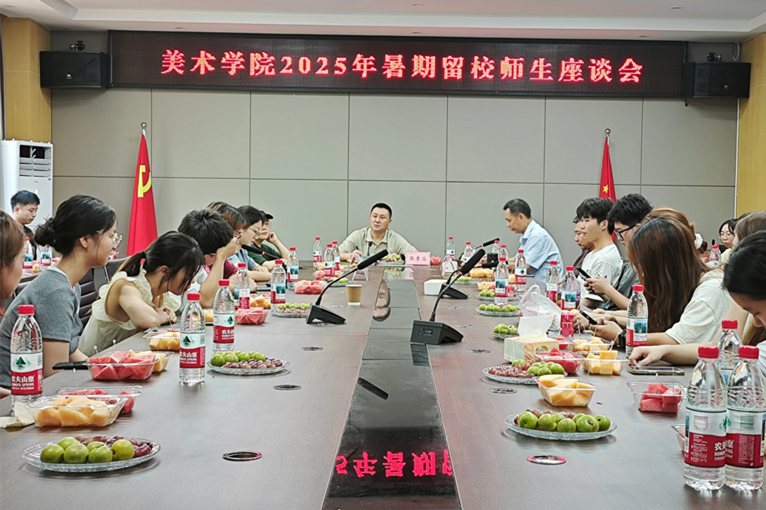张吉应指出,暑期留校师生们不惧炎热、坚持学习、工作与实践的精神值得大家学习,公司党委向大家表示诚挚的问候和由衷的敬意。针对大家在发言中提到的生活保障等需求,张吉应明确表达了公司的深切关切与全力支持,强调公司会第一时间协调解决实际问题,为大家的暑期学习生活筑牢后盾。张吉应要求,一是希望大家坚定目标,厚积薄发。考研同学要耐得住寂寞,科学规划,稳扎稳打。二是希望大家扎根生活,潜心创作。参与主题创作的同学,要深入挖掘题材,精研技艺,力争推出有筋骨、有温度、有内涵的精品力作,展现我们美院学子的时代担当。三是希望大家学以致用,服务社会。“三下乡”实践队员要珍惜深入基层的机会,将艺术专长融入服务乡村振兴、文化传播的实践中,在广阔天地中受教育、长才干、作贡献。四是希望大家务必时刻绷紧安全这根弦,严格遵守校规校纪和各项管理规定,注意人身安全、财产安全、出行安全,特别是高温天气下的防暑降温。公司要全力做好留校期间的学习空间保障、生活服务保障和必要的导师指导安排。